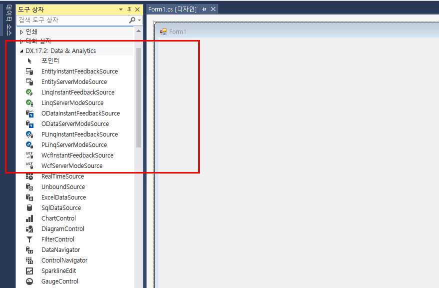 - 무슨 이유 때문인지 Devexpress Control 들이 Visual Studio Toolbox에서 사라지는 현상이 있음
